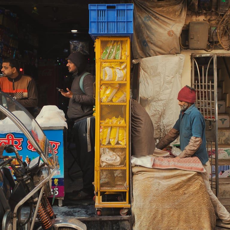 Photographing Old Delhi pushed me out of my comfort zone. In Mauritius, my street photography often revolves around isolated subjects or quieter scenes, an approach shaped by the island's rhythm and light, which you can explore in my street photography work from Port Louis Central Market. Here, I was confronted with complexity at every turn. Frames were layered, unpredictable, and constantly evolving.